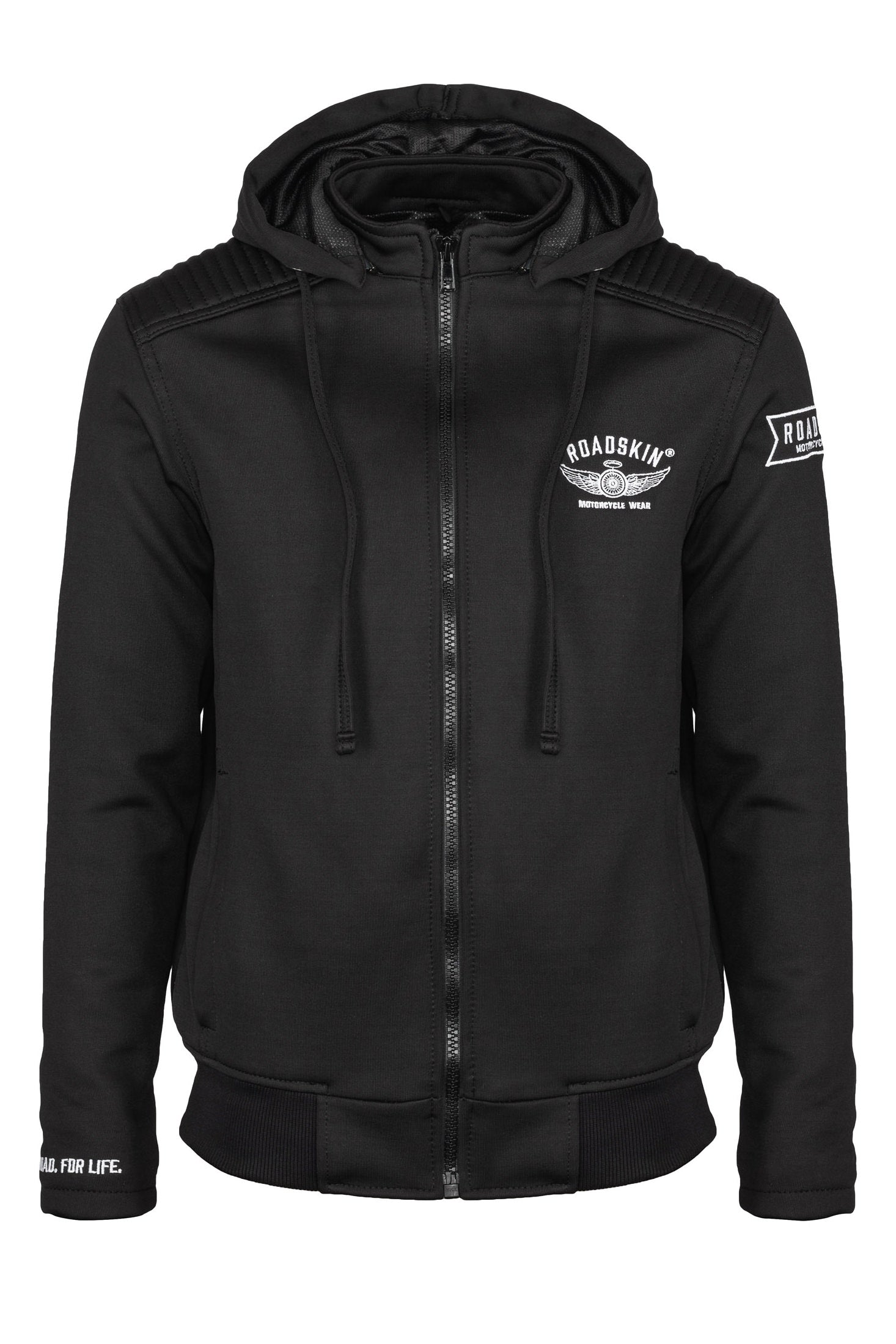 Accommodating a full set of shoulder, elbow and back armour, the hoody is as safe as any other 'proper' motorcycle jacket out there. It's made from a Maximite fabric that interestingly, as well as the usual motorcycle safety tests, it's passed level 2 for slash and stab resistance. So should you find yourself in a knife fight you can be confident you'll have a secret advantage over your opponent, if that's your thing.