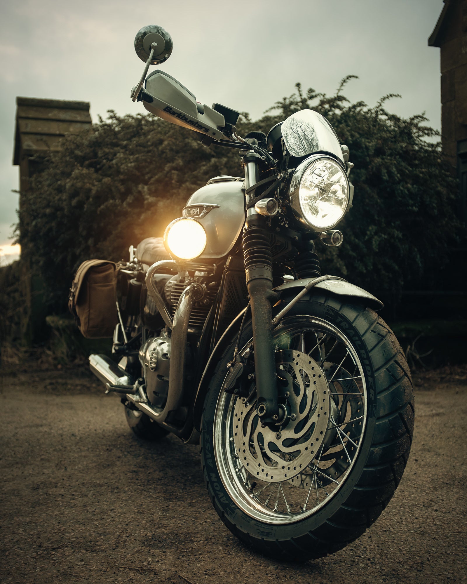 In standard form the T120 is quite the exercise in design, but I wanted mine to be unique to me. So I set about removing all colour from the bike, going for a black and silver colour scheme. Then with a healthy dose of parts from Motone Customs, the bike's appearance has been subtly changed to give a nod back to the bikes of the 50's.